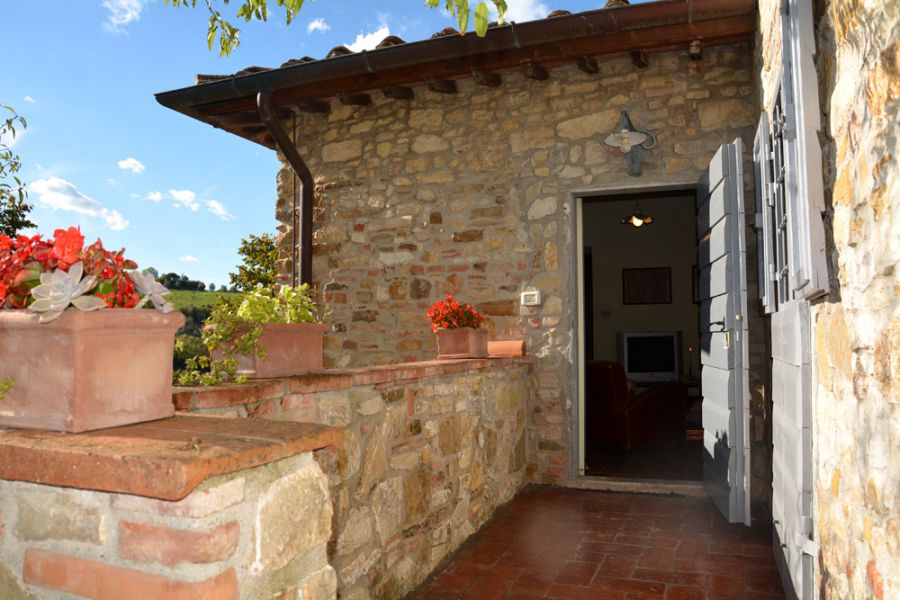 The apartment is located on the first floor of the farmhouse and has its own private access. There are four rooms: a full size living room with TV and sofa bed, a double bedroom with closet and french doors to the front terrace, a bathroom with tub and an eat-in kitchen, fully equipped to make your favorite Tuscan meal.The apartment has Wi-Fi internet access for anyone with a laptop or phone with access. The views from the sitting area into the countryside are beautiful. The sofa turns into a sofa bed to accommodate two additional adults or children.
