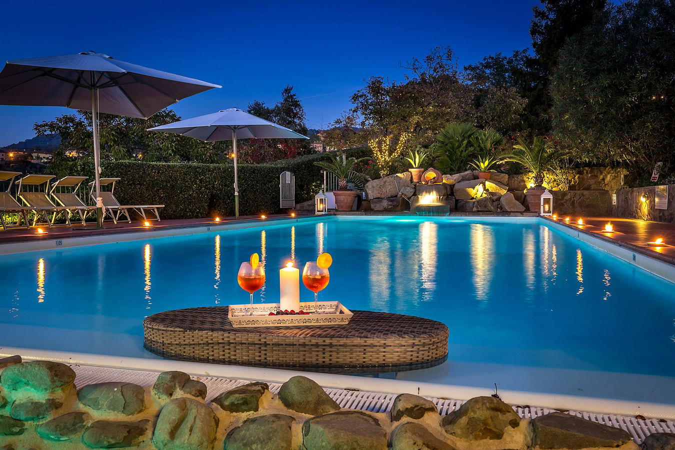 The agriturismo experience includes visiting the extensive estate; with mild winters, dry and comfortable summers with light rains facilitate the harvest of a grapes and the base of their award winning wines. The convenient position of the farmhouses invites its guests to enjoy both the fantastic views and its close proximity to the many sites. The estate boasts a professional, green tennis court, wide spaces where you can relax, and a large swimming pool with a jacuzzi area, umbrellas and lounge chairs.