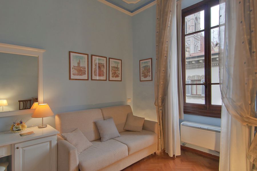 The rooms have enchanting views over the Florence’s cathedral and bell tower