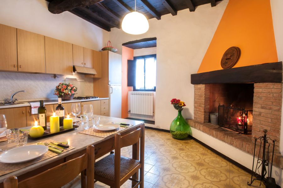 The family run vineyards and holiday apartment rentals are located in the lush countryside southeast of Florence. As you wind down the pleasant country road, you feel the fresh air restore your spirits and revitalize your vacation enthusiasm. The 8 self catering apartments and three independent accomodations/private villas boast a typical Tuscan style decor and each include a fireplace and independent heating system. The ceilings with their polished oak beam ceilings and traditional Tuscan terracotta tiles, maintain the original character and charm or the fully restored “borgo” (Italian for small town.) Fully furnished with bed, bath and kitchen linens you will find that the homes offer modern appliances and furnishing.