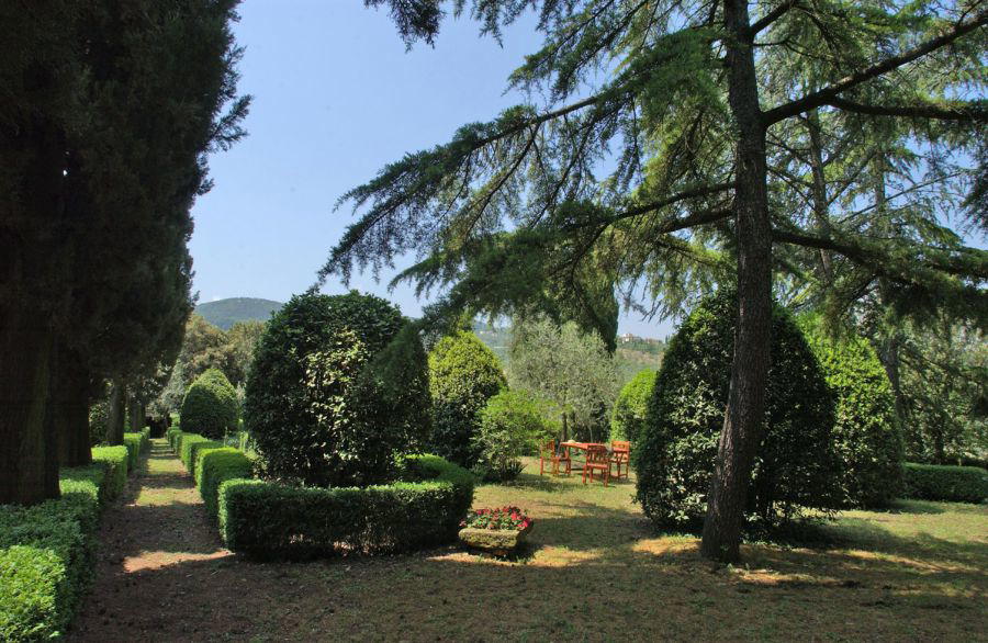 Next to the villa, the exclusive Italian garden, cypresses and live oaks form an ideal setting in which to spend relaxing time in close contact with nature.