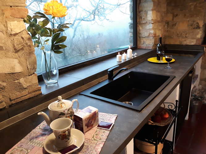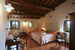 The farmhouse has 5 bedrooms: 4 doubles and a triple bedroom. They are furnished in typical Tuscan style with personalized wrought-iron bedstands, handpainted ceramic tiles, colorful mirrors and lots of natural light. Three of the rooms are located in the renovated barn and share a large grassy common area which is bathed in sunlight and overlooks a stupendous landscape. These 3 rooms can be rented together to host up to 7 guests and offer the possibility to a family or group of friends to share a more private, intimate stay away from the main house. With its own well equipped-kitchen and outdoor dining area, it is a great place for guests wanting a base near Florence (the minimum stay if you rent out the entire apartment is 7 nights).