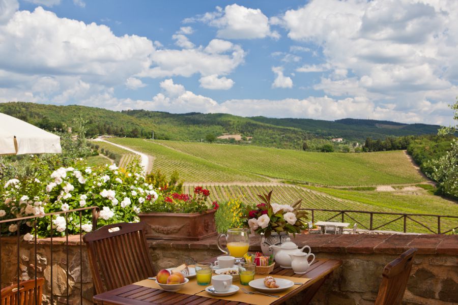 Panoramic views on the hills of Chianti wine country with its vineyards as well as the proximity to the main tourist destinations in Tuscany