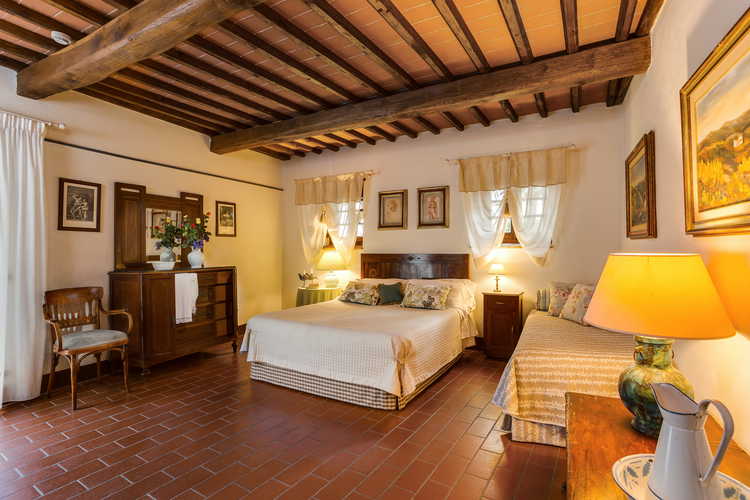 The Romitorio di Serelle vacation rental apartments are located close to Barberino Val d'Elsa, in the heart of the Chianti region. It offers apartments of different sizes, all with their own independent entrance, furnished in rustic Tuscan style with real wood beam ceilings and terracotta floors.