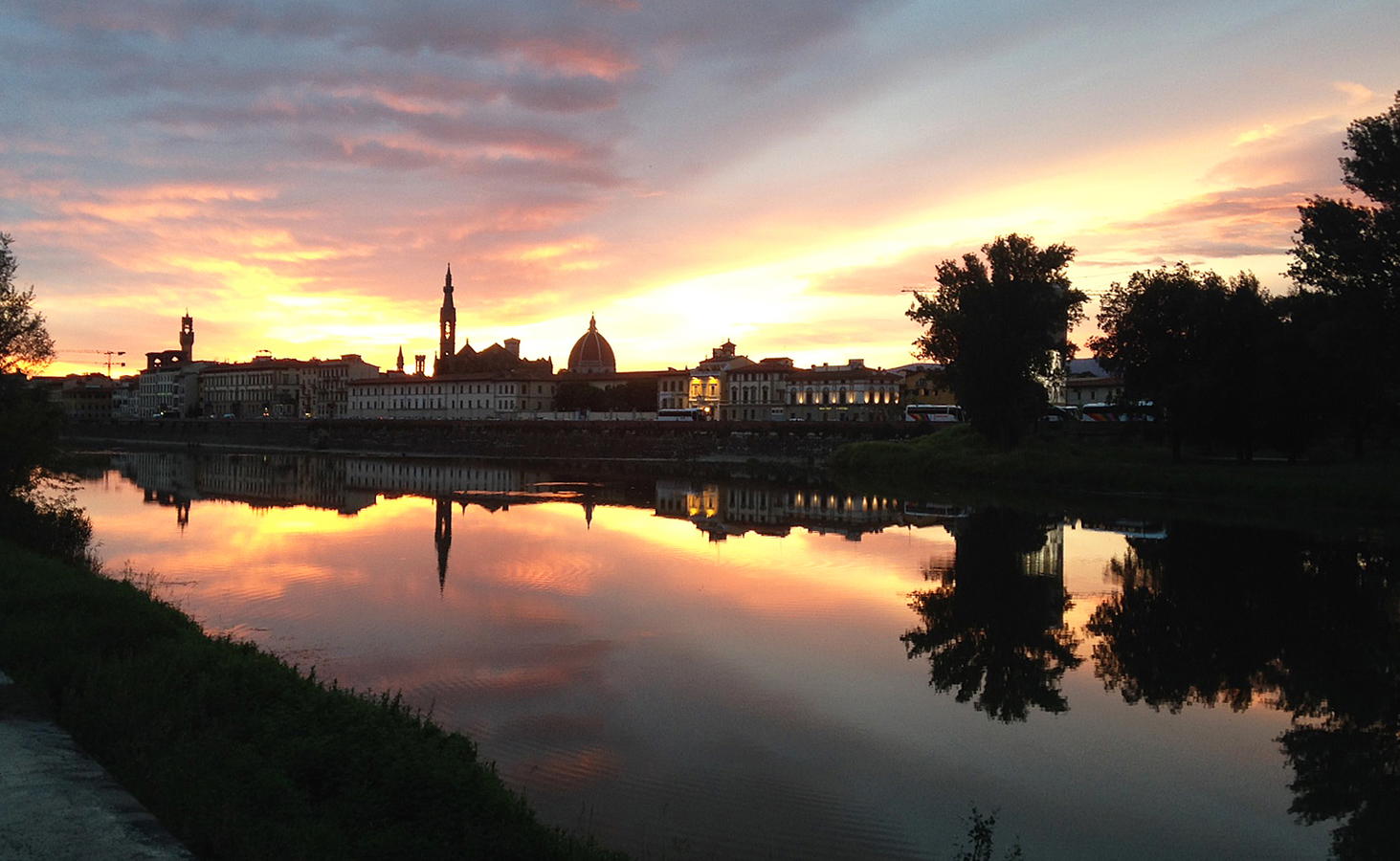 On the Arno river, Ponte Vecchio and the old city which the apartments look on to.