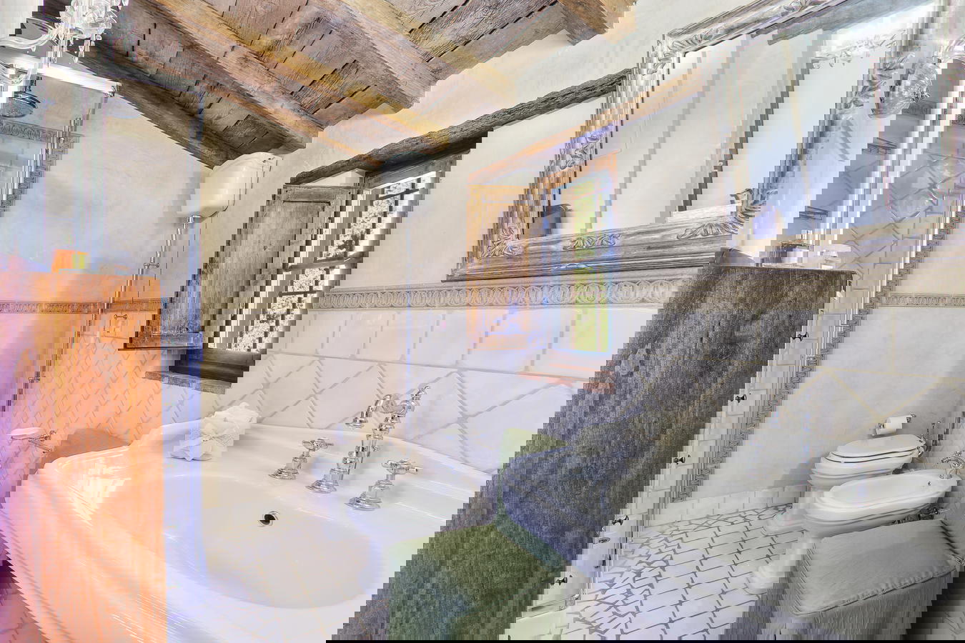 The ground floor is perfect for entertaining, organized with lots of dedicated spaces for private and family time. The fabulous kitchen is equipped with a 5 burner stove, refrigerator, dishwasher, gas oven, and American coffee machine as well as an espresso coffee machine, a moka coffee pot and a microwave oven. Groups of up to 14 can enjoy the formal dining room which includes an extra large fireplace just like where farmers from yesteryear used to warm-up. There are two other living areas specifically designed for entertaining: a sitting room with satellite TV and a reading room with a cozy fireplace.