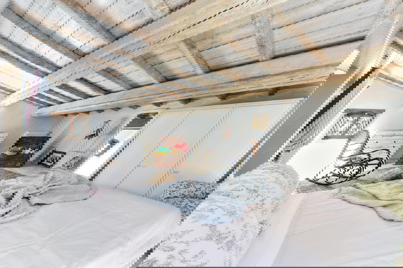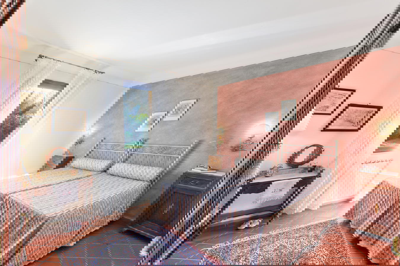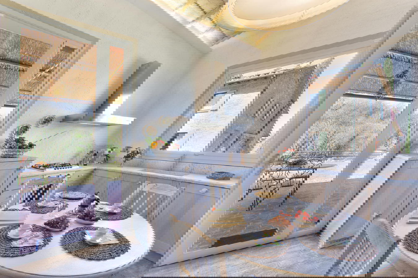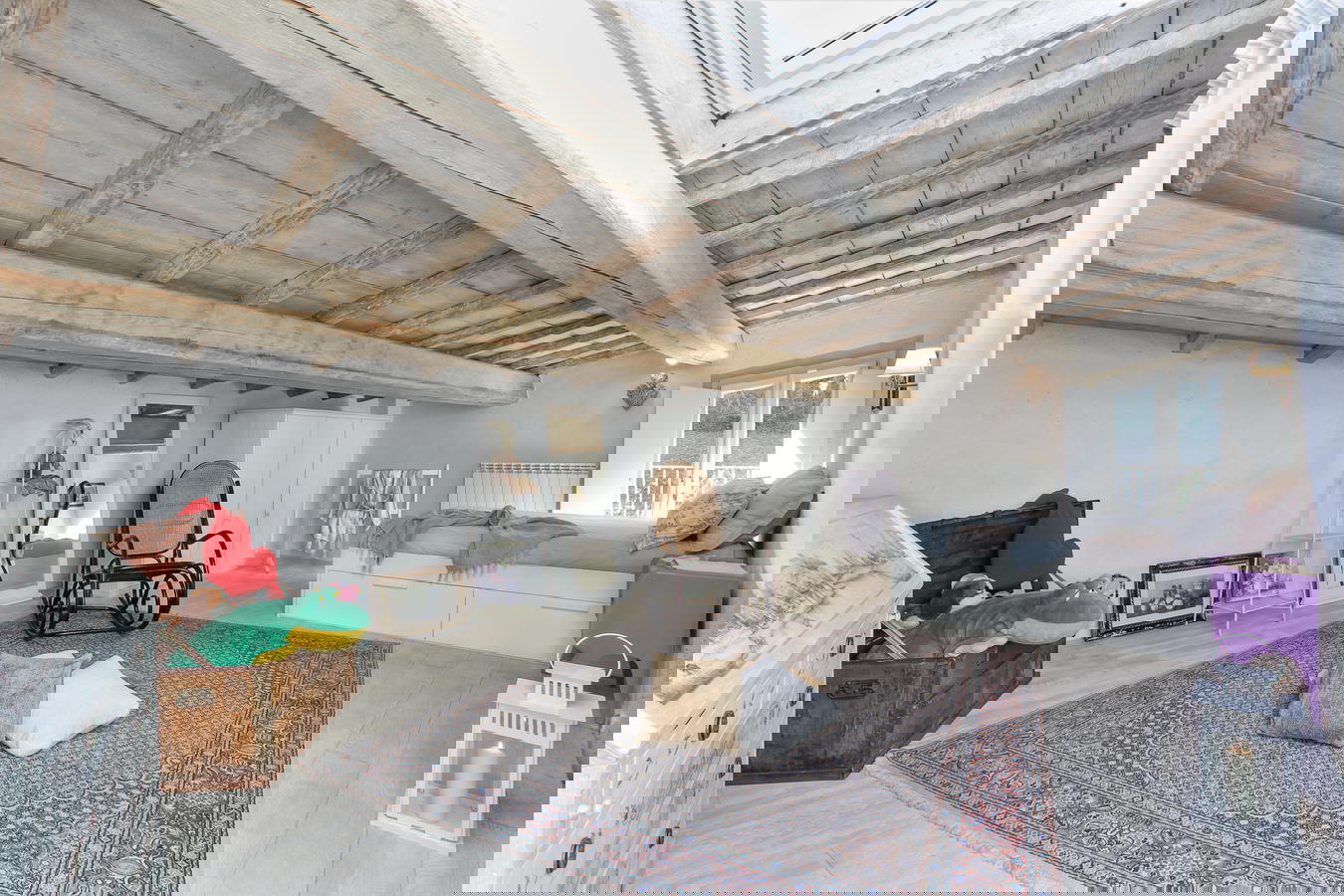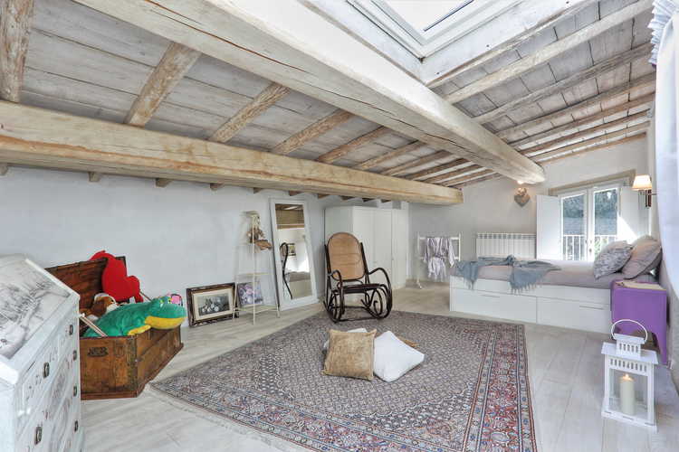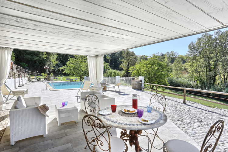 Next to the main villa is a covered area with a wood-fired pizza oven, a BBQ area and a refrigerator. The outdoor table is large enough to accommodate the entire party on vacation thus making Villa La Fonte the perfect holiday rental to accommodation groups in all seasons where the spacious interiors with the lovely wood beam ceilings and terracotta floors can be enjoyed in cooler temps, while the large garden and wonderful views in the warmer months.
