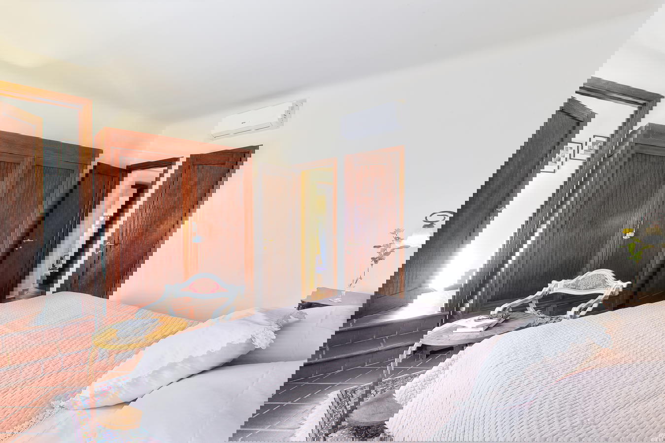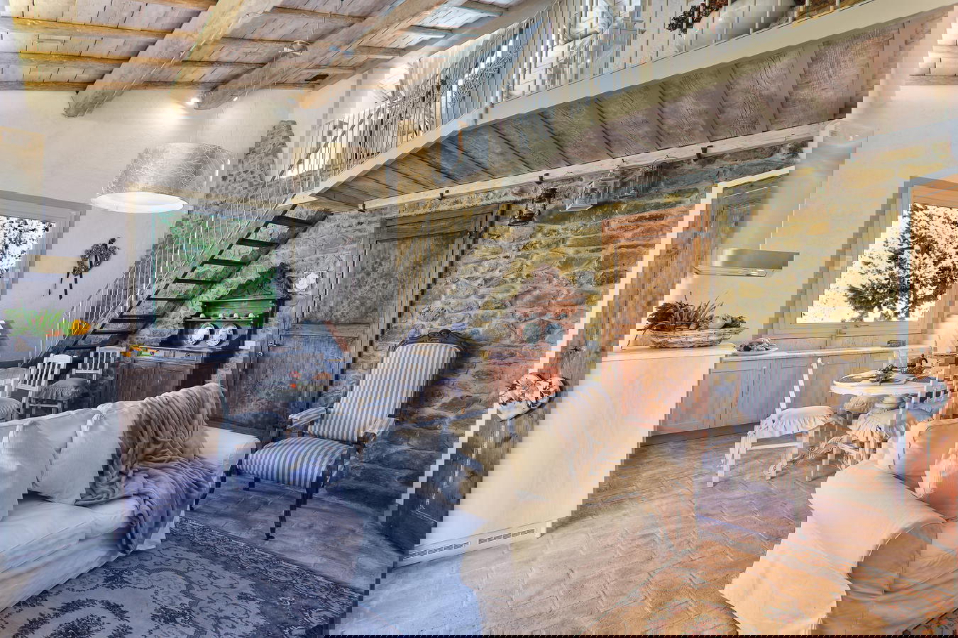 The small villa is comprised of a modern kitchen area with a table for four persons, a spacious living area with flat screen TV, a bathroom and a double bedroom. The second bedroom is found in the loft. The entire apartment has WiFi access. The living area is decorated in soft colors, accenting the lovely stone walls, high ceilings and luminous interiors.