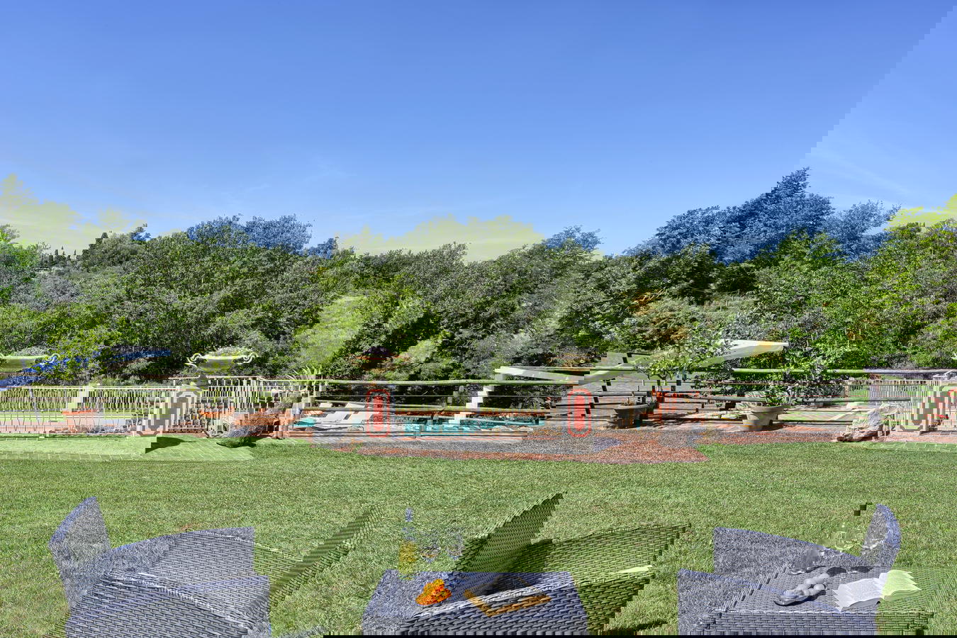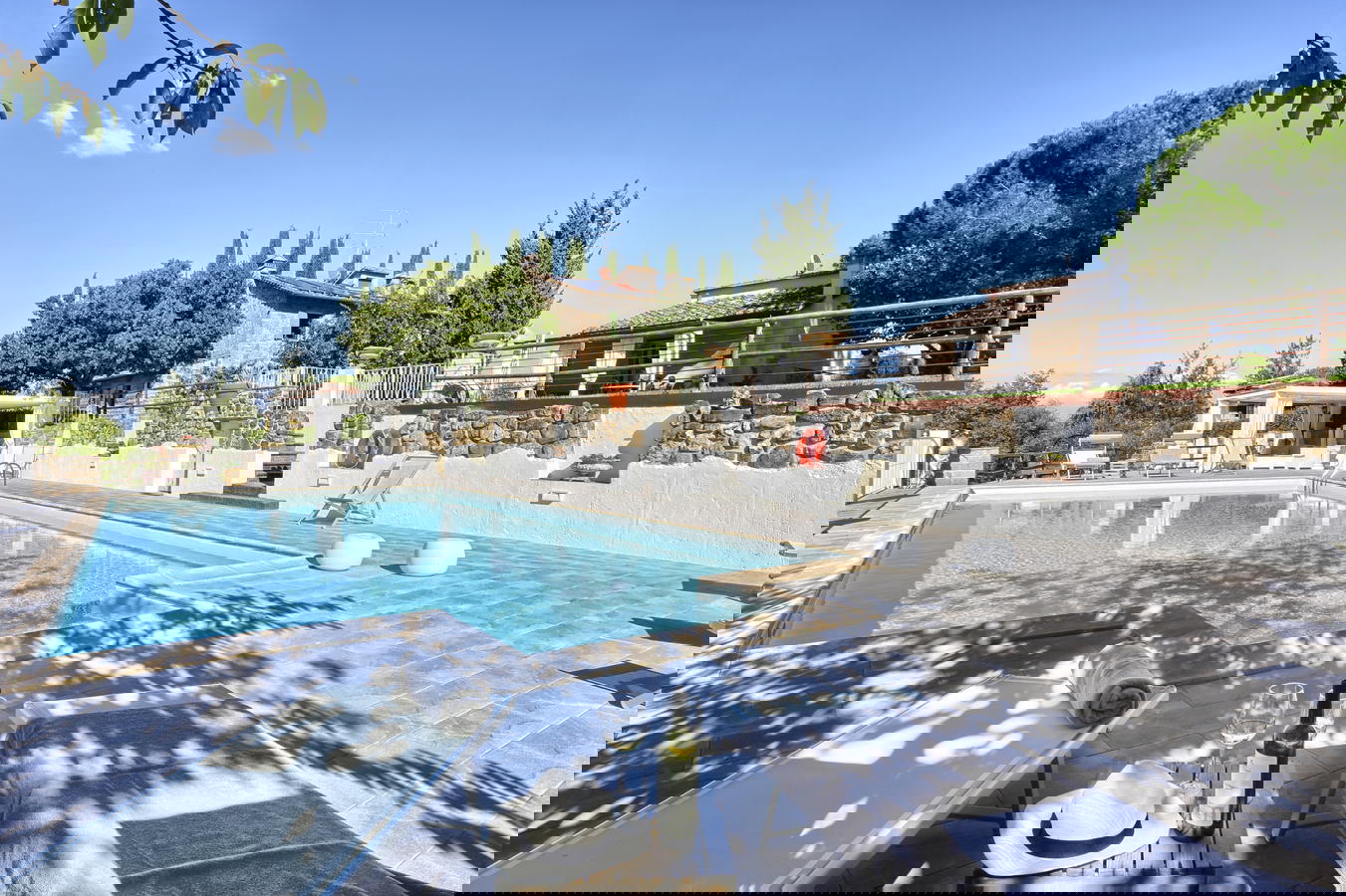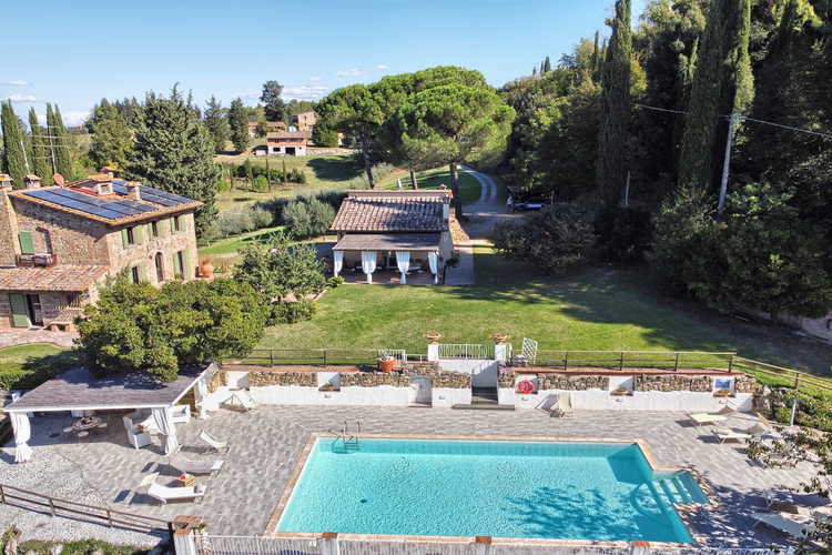From the pool you will catch glimpses of the Chianti vineyards, distinctive Tuscan cypress trees and undoubtedly appreciate the tranquility and calm that surround the private property.