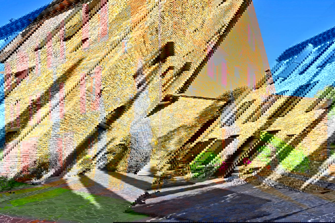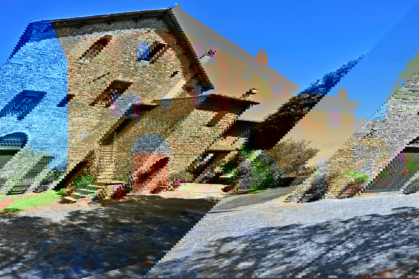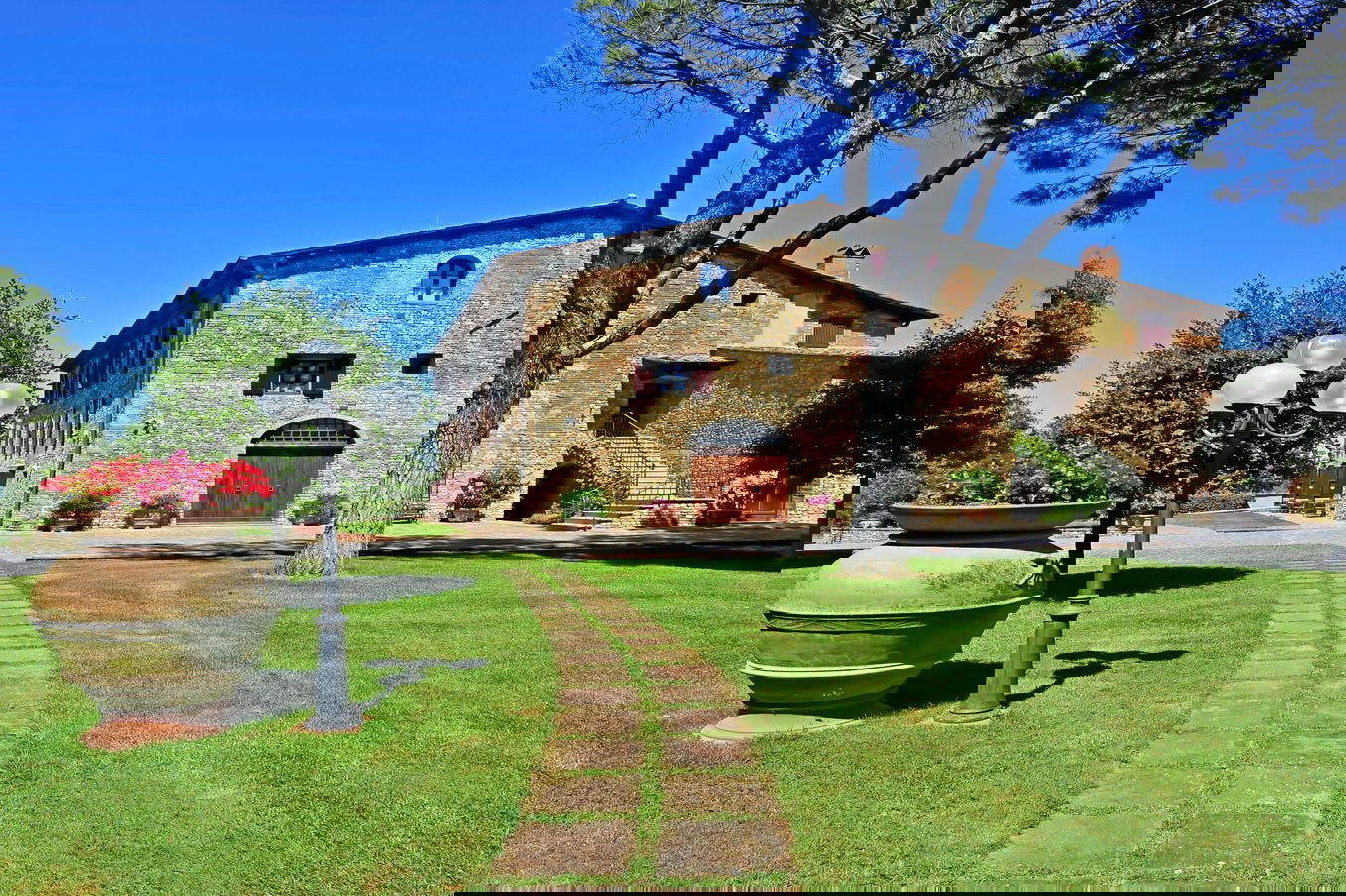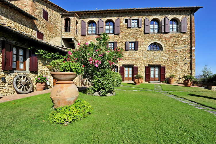 The Villa Le Torri is surrounded by an ample garden area, olive and fruit trees, a sparking swimming pool and hosts nine self catering vacation rental apartments at Villa Le Torri is an excellent start to your holidays in Tuscany. This medieval villa and home to the Cantini Family is made from near by stone and handmade red brick and has been part of the scenery since the 1300’s with its antique wood burning oven and wine cantina.
