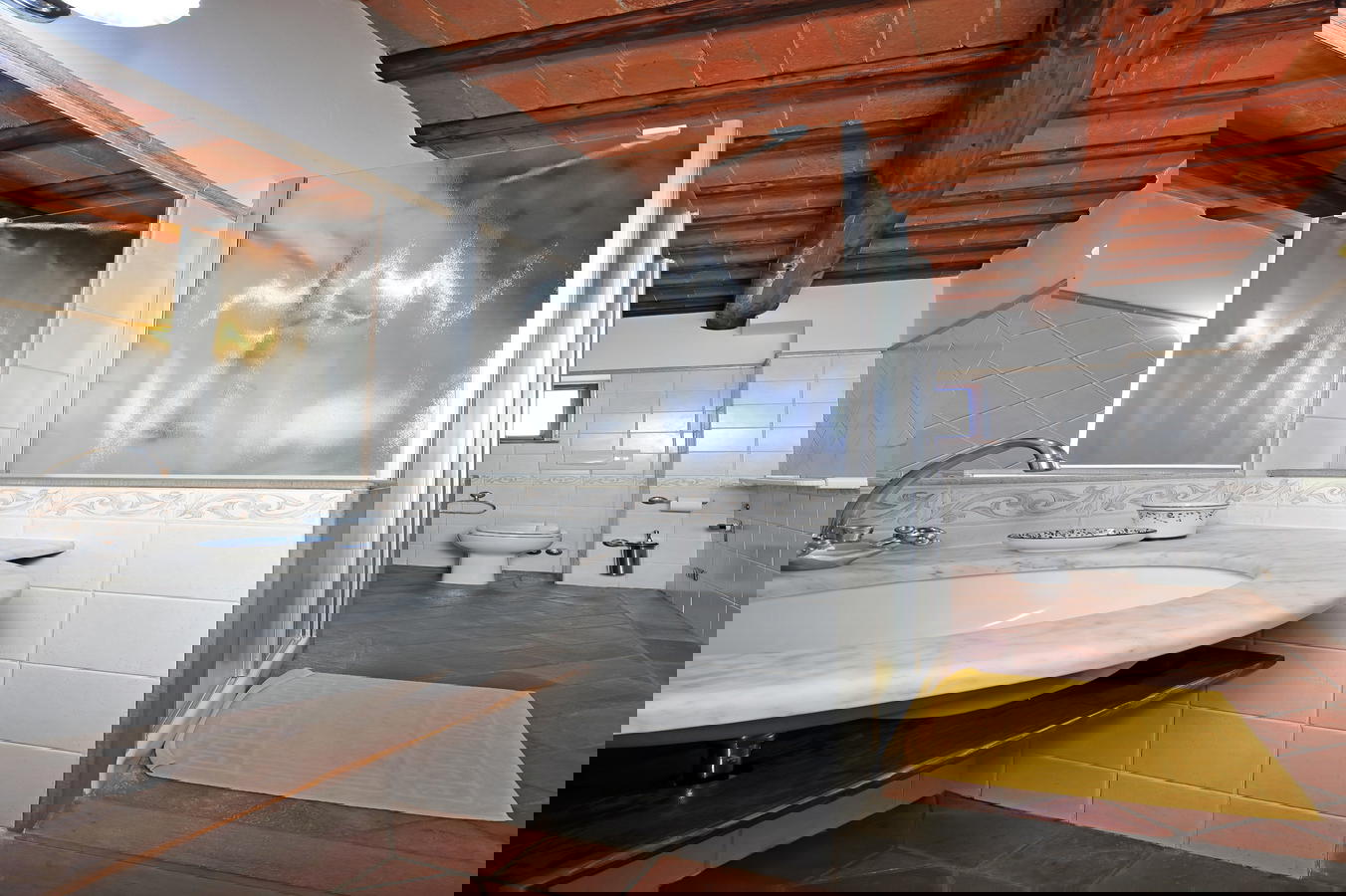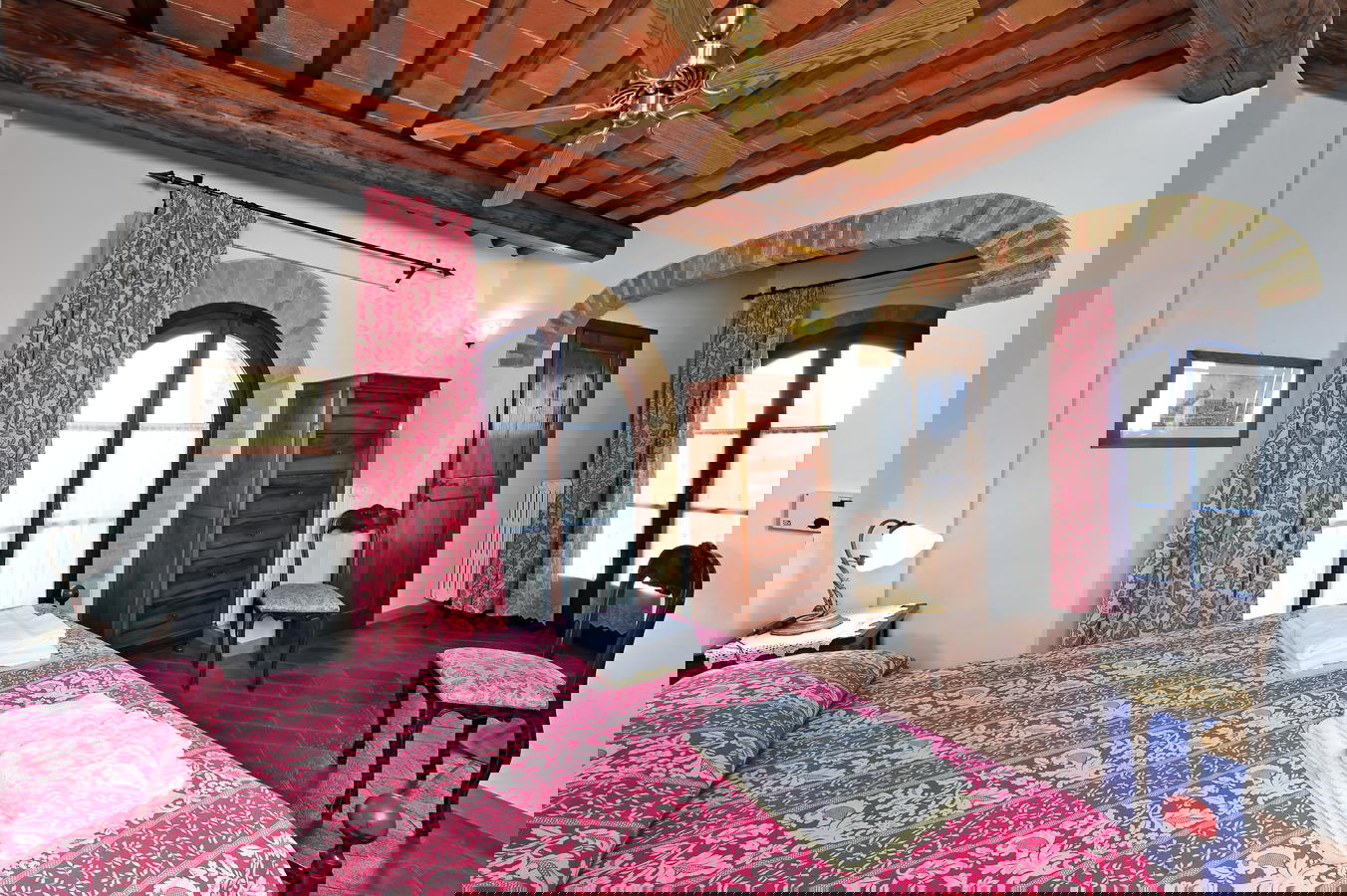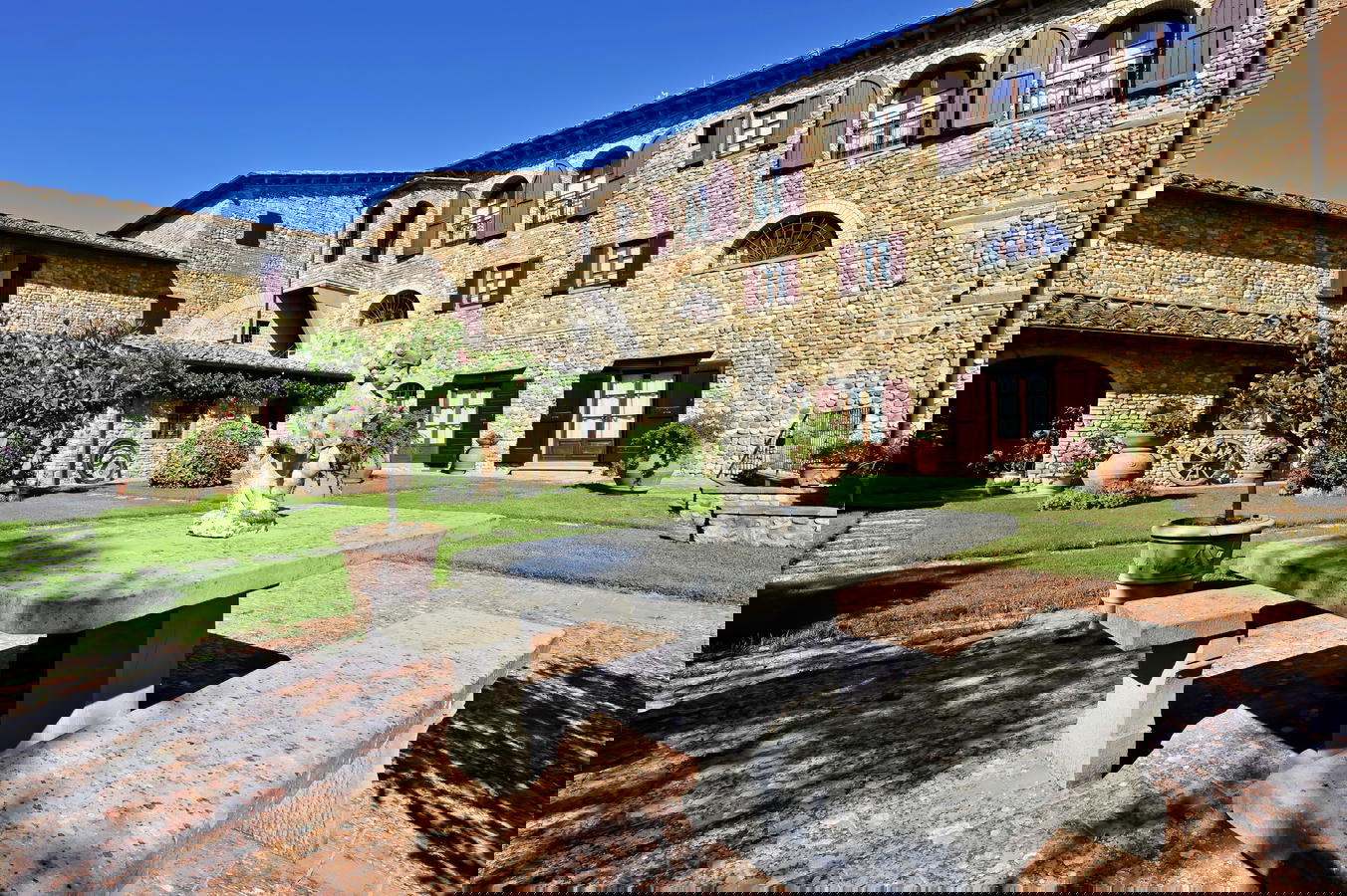 The Villa Le Torri is surrounded by an ample garden area, olive and fruit trees, a sparking swimming pool and hosts nine self catering vacation rental apartments at Villa Le Torri is an excellent start to your holidays in Tuscany. This medieval villa and home to the Cantini Family is made from near by stone and handmade red brick and has been part of the scenery since the 1300’s with its antique wood burning oven and wine cantina.
