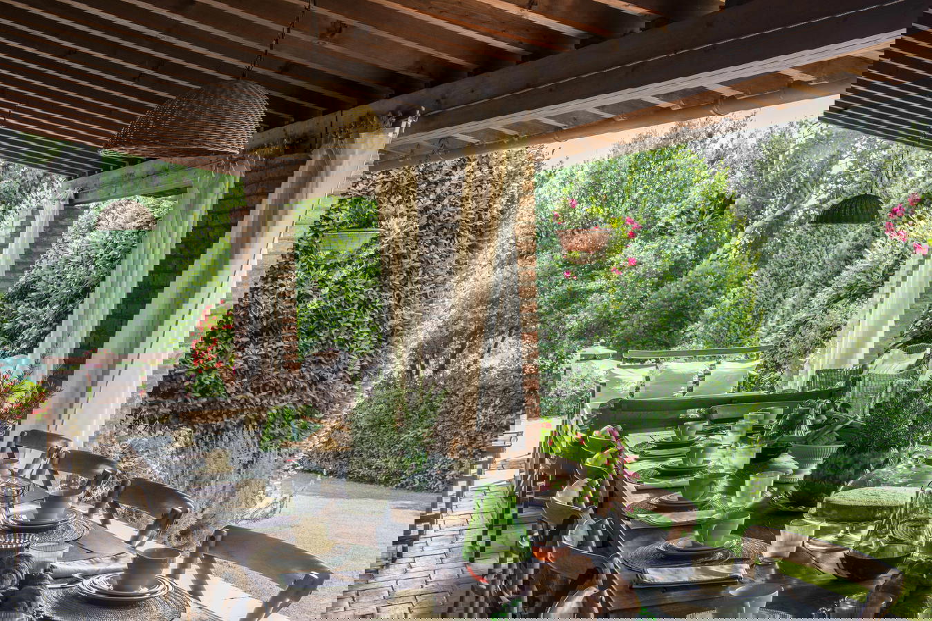 The outdoors is divided into four areas: the large grassy area directly in front of the villa, a covered loggia and BBQ area, the pool area and a wooded park area that has centuries-old trees. From any area around the property, you will be able to see the vineyards that surround the estate.