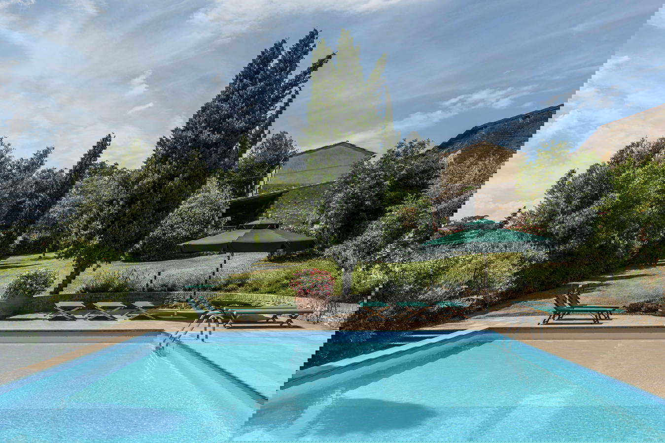 The villa has 8 double rooms (3 of which have two single beds) and a single bedroom with one of the double bedrooms being on the ground floor, with the bathroom adapted for disabled use. The villa has a large, well-maintained garden where guests can relax by the marvelous swimming pool and enjoy stupendous views of this corner of Tuscany.